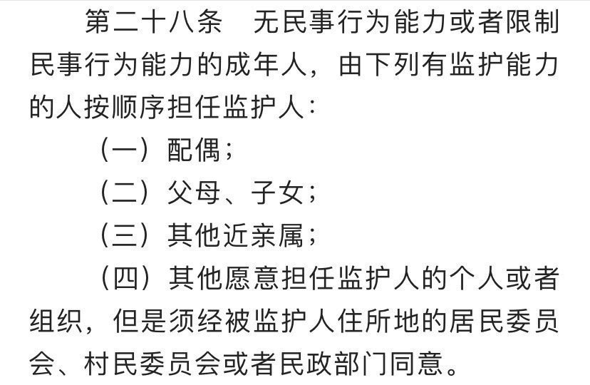 宛若依据律法,婚后万一遭受较大的波折,比如因为伤病,成了“限制民事行为能力人”,“配偶”才是“第|一顺位的监护人”,排在“父母”前面。而“监护”这一语词,也就意味着,可以掌控配偶的一切。