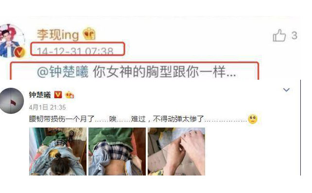 2014、2015这两年,两人在社交平台上曾有过的“亲密互动”也被扒了出来,包括一些“露骨”的言语,但这些内容之后全都被钟楚曦删了。