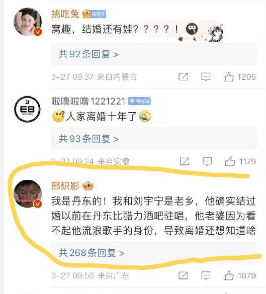 知情人透露两人的离婚原因:刘宇宁曾在丹东比酷力酒吧做过驻唱,他前妻觉得流浪歌手的身份不能带给她稳定的生活,从而做出的选择。