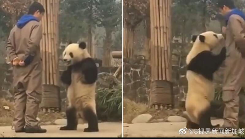 另外一只会叉腰的熊猫,来自四川的大熊猫“蔓越煤”(青青),因生气叉腰与饲养员理论。