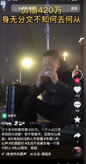 甚至最近还多了个"欠债后从成都重新开始"的环节,震惊成都,近一夜之间暴增数位百万负翁。
