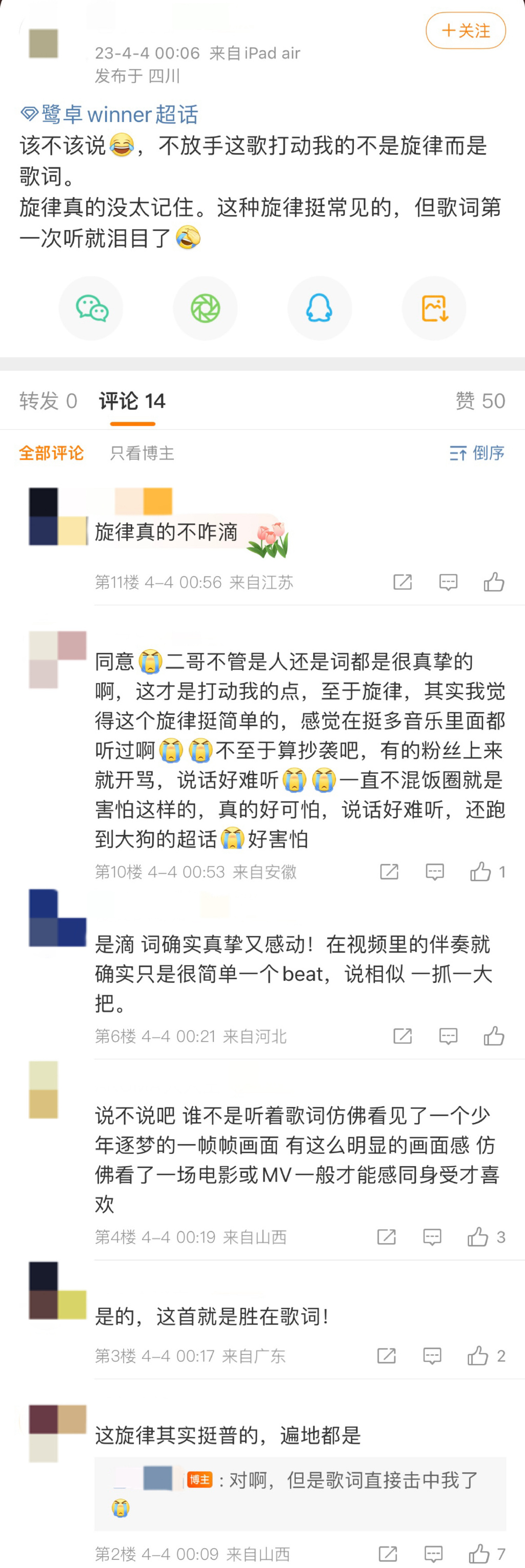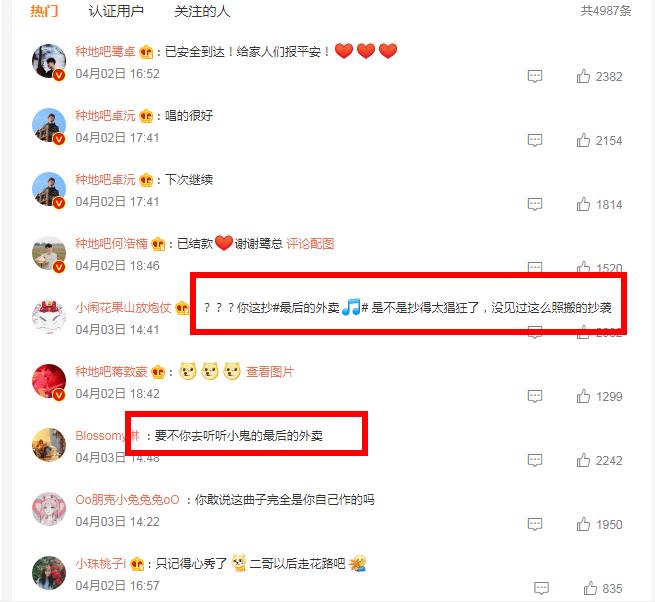 ![]() 鹭卓在唱这首歌之前说:“这首歌是2018年就写好的一首歌 我一直不知道取什么名字比较合适 这回很荣幸麦家老师为这首歌赋予了一个很有意义的名字《不放手》 之前有唱过这首歌 但是这次的感觉特别不一样 土地给了我更多的灵感 让我再唱这首歌时心态不像以前一样迷茫 我不知道未来会怎么样 但我只想做好现在我在做的事。 每个人或许都有自己最难过的时刻 最不知所措的时刻 别害怕! 相信自己!你很棒!你的《不放手》会让你成为你想要成为的自己!” 但是评论区里面不少人说他抄袭: ![]() |