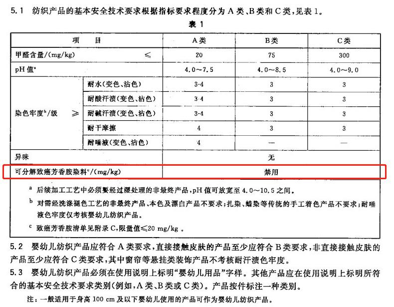 我们国家强制性标准GB 18401—2010《国家纺织产品基本安全技术规范》就明确规定禁用24种可分解可致癌芳香胺染料,其中就含联苯胺(化学文摘编号92-87-5)。