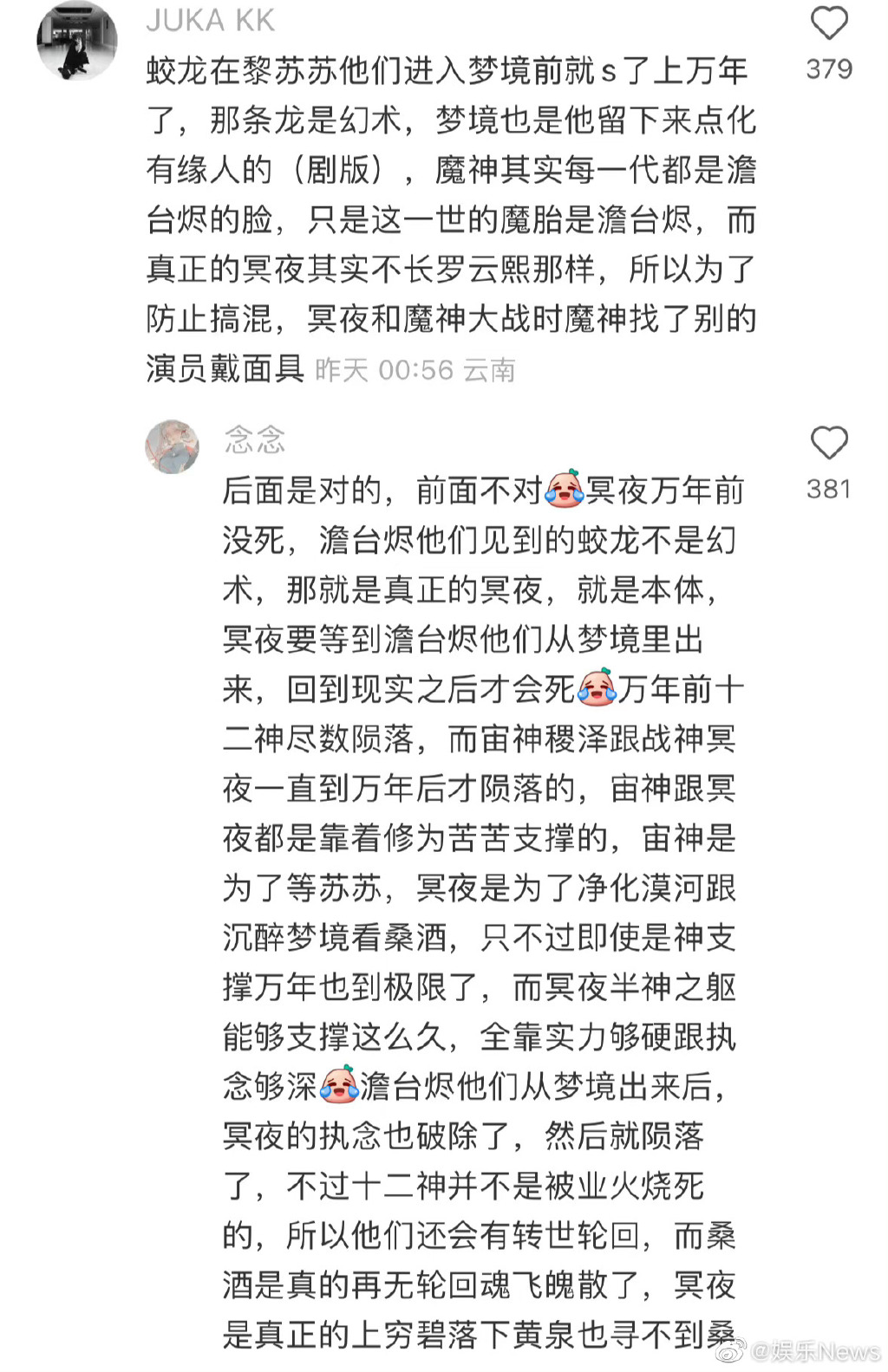 从冰晶盏就可以看出来,冥夜觉得,族人的生应该重于天欢的死。他是失去过好友同袍的,他理解这种天地一空茫然失措的感觉,但他不愧是神,骨子里有这坚定、仁恕和宽广。他不能理解桑酒这种程度的怨恨,不能理解她的选择,对于桑酒摔碎冰晶盏的选择,他毫无预期。这种思想和性格的冲突,也许在更多的交流当中可以逐渐磨合,可惜没有这个机会了。