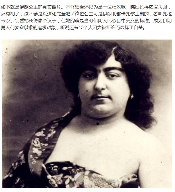 大家根深蒂固的印象当中男人才是长胡子的,女人是不会长的,但是现实生活中,因为激素的缘故,也有不少女人长胡子,甚至在以前有些民族还以女人长胡子为美!就是下面这位,怎么看也是个男人的样子,但是在她生活的年代,这样就是最美的!