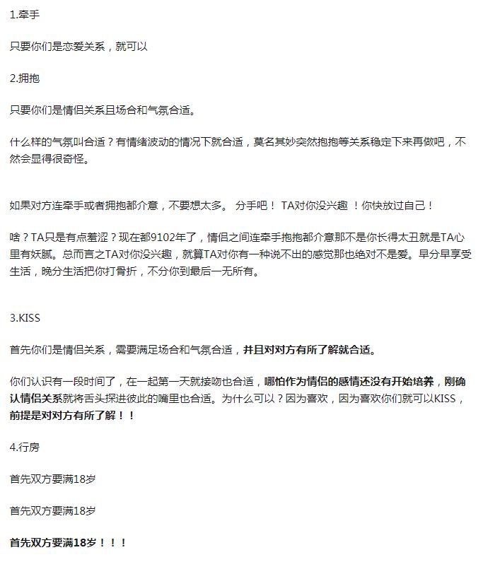 其实相亲后多久可以接吻,完全取决于两个人在一起相处的融洽程度。 人之所以为人,就是有灵活和热情的大脑,这给生活打上了各种变数,恋爱牵手、拥抱、接吻、做爱都是有感而发的一个过程,而不是像计划表一样,恋爱100天牵手、150天拥抱、200天接吻、365天做爱...这样机械化模式化的恋爱太没意思了。 ![]() 相亲后,两个人随着深入的了解,感觉对了,认定了对方,当然就可以接吻。 认定对方的过程有时候会一见钟情,有时候可能是润物细无声的长期相处;一见钟情的可能吃一顿饭在一起看个电影后就热吻了,而慢慢相处的可能一年才发展到亲吻的地步,都是有可能的。 ![]() 那么接吻后如何继续发展呢?小编觉得,一旦到了接吻的地步,就是一种双方互相认可的地步了,这时候继续发展下去当然是坦诚相待,别在藏着掖着了,一起规划下未来,努力工作也好,努力学习也好,先一步步的走下去。 时机成熟了,谈谈结婚的事,谈谈自己未来家的事,总之这时候自己的想法、世界观、人生观一定要全盘的告诉对方,别藏着,给对方加深了解自己的机会,毕竟还没结婚,深入了解后再看看到底合不合适。 因为这个时候托盘而出的时候,对方或许觉得:“我靠,我的人生不想这样,咱们不合适”。 ![]() |