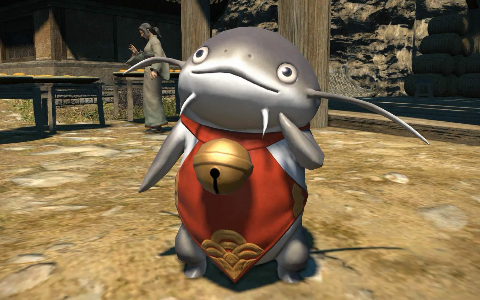 鲶鱼精是最终幻想14里的一个蛮族,他们长相非常特殊,脸大,嘴大、眼睛圆圆的很小,下面这个样子: