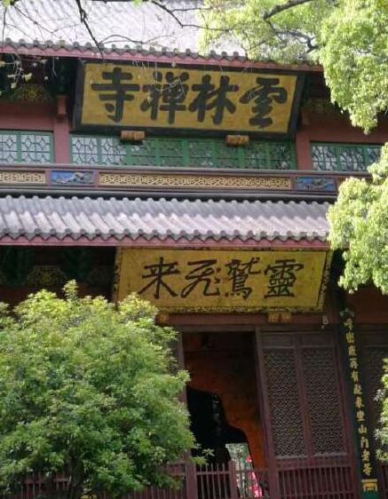 灵隐寺还有一个名字叫做云林禅寺,话说康熙二十八年下江南游杭州,来到灵隐寺,发现这里山好,水好,风景极佳,老爷子一开心,就在寺内摆下酒宴与众人畅饮,灵隐寺的主持和地方官员打商量,如果趁着皇帝能给寺院赐下一块牌匾是多风光的事,这样灵隐寺就更有名气了,连带着整个杭州府也增光不少啊,于是,趁皇帝喝的正高兴,老和尚立马磕头求赐匾,皇帝爽快答应,当着众人准备提笔书写,可能喝的有点多,脑袋不清楚,手也不听使唤,就歪歪扭扭写下一个雨字,而这个雨字奇大,占据整张纸的大半位置,要知道繁体字的灵下面还有三个口一个巫,皇帝一看,这下要丢人了,正愁着怎么是好,这是有个叫做高江村的大学士,在手里写下云林两字,悄悄的拿给皇帝看,皇帝一看心说大妙,一高兴酒都醒了,重新写下云林禅寺四个大字,甚为满意,老和尚一看,心想不对啊,我们是灵隐寺,你怎么给写成云林禅寺了,皇帝开口说,这个地方天上有云,地下有林,我们就叫他云林寺吧,老和尚也不敢多说,只要叫人制成匾额挂于山门上,灵隐寺自此改名云林禅寺。
