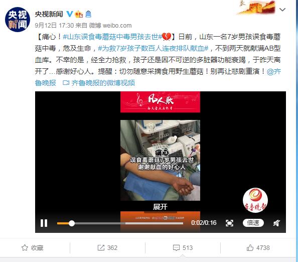 山东省济南7岁男孩误食肉褐鳞环柄菇抢救15天后,全身多脏器功能衰竭去世。