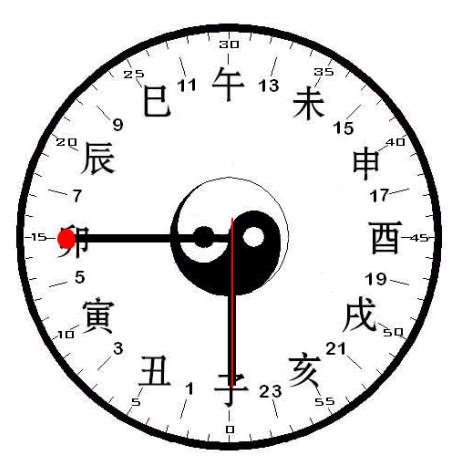 阴阳鱼太极图正确方向 视频: 拳法以柔为主,柔中带刚,刚中带柔。 揭秘阴阳鱼太极图画法 太极图,是中国传统哲学和文化的形象标志,它反映宇宙万物皆分阴阳的原本特性。太极图从远古时代的简单两条鱼,到如今的两条黑白相对的鱼形图案,相传数千年,图形虽有多种版本,然其基本图像要素没有变(指阴阳鱼太极图,不是周敦颐的水火匡廓图)。 太极图直径为120 ,两个阴阳鱼鱼眼的直径都是20 ,鱼眼圆心距大圆心是27,黑白阴阳鱼尾部,消失在圆心角22.5°。 太极阴阳鱼的转动方向,是逆时针的,就是在地球北极上空所看到的地球自转的方向。见下图。 通过大圆圆心,分别向小圆引两条交叉切线,并延长与大圆相交。如将这相交的四点分别相连,形成两条与中心水平线相平行的平行线。这两条切线与中心水平线的夹角都为22.50 ,而由四个交点所连成的水平平行线,即相当于地球的南北回归线。若再通过两鱼尾消失点,分别作两条与中心水平线相平行的平行线。这两条行线即相当于南北极圈线。这是由于地球在饶日公转时,其自转轴相对黄道平面倾斜23。5度,且倾斜方向始终保持不便。所以,在地球上才可见太阳视运动的南北回归。 为了便于理解,现引用一个24时制钟表面盘。将两条交叉切线延长与太极钟表面盘相交,交点所在时刻分别是:早晨4:20—7:40左右,下午4:20—7:40左右。这四个时辰正是太阳在冬至和夏至的起落点。冬至太阳起得迟,约在早辰7:40前后,而落得却早,约在下午4:20前后,一年中这一天白天最短,而夜晚最长。夏至时,太阳起得早,约在4:20前后,而落得却很迟,直到晚上7:40左右,这天白天最长而夜晚又最短。一年中,只有春分、秋分这两天是日夜平均的,早晨6点日出,下午6点日落。.见下图。因各地经、纬度不同,海拔高度也不一样,各地所见日出时间,也就不会完全一样。这是北半球的情形,而南半球的季节正好与北半球的冬夏、春秋相反。 一个太极仪表就成了。 还真别说,画太极图还真是门学问。 |