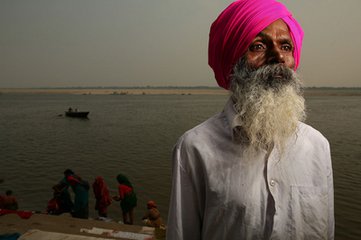裹着红色头巾,是印度锡克教徒的最醒目标志。
