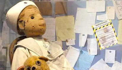 在1920年代这个娃娃曾经是很受欢迎的娃娃,它有开心与伤心的表情,但这看起来实在是太怪异了… ![]() 4. 罗伯特娃娃 (Robert the Doll)