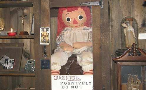 这个娃娃近年因为电影《厉阴宅》及《安娜贝尔》而声名大噪,但其实真正的安娜贝尔只是这个名叫Raggedy Ann的娃娃、并不是什么古老的瓷娃娃。据说当初这娃娃是由两位护校学生Donna和Angie从二手店买回来的,但却常在外出回家后发现它待在不同的位置,甚至曾在羊皮纸上留下信息。她们只好把娃娃交给专事超自然现象研究的Warren夫妇,目前这个娃娃则被安置在康乃狄克州的The Warren’s Occult博物馆。