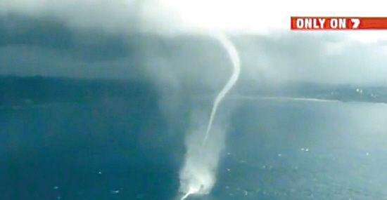 旋风在河流、湖泊或者海面上发生时,就会形成龙卷风。大气里的冷空气团经过水体时,温暖的潮湿气体向上升腾,形成巨大的水柱。这些水柱从海面上掠过时,它们会留下一条由水汽形成的尾迹。水柱的直径从几英尺到数百英尺不等,深入到云团深处。海上龙卷风比旋风更微弱,往往只有它们从陆地上经过时,才会对人构成威胁。