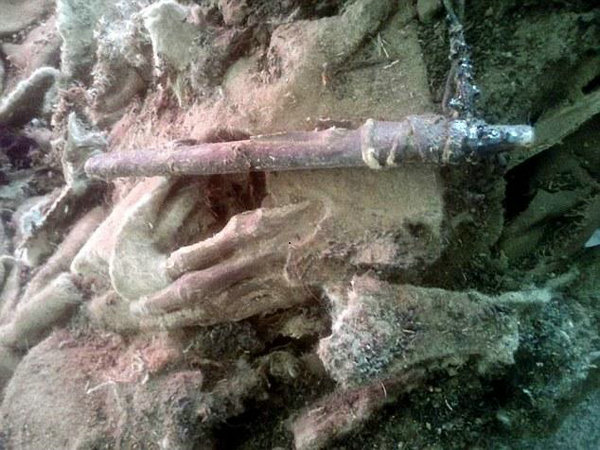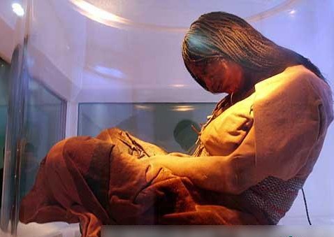 据有关新闻报道,在蒙古的阿尔泰山脉海拔2800米处发现了一具女性木乃伊。是一位突厥女性,现在为止,只有一只手和一双脚可以看得到,据悉,这具木乃伊很可能是公元六世纪的一位贵族,因为在发掘的过程中,出现了大量的陪藏品。有马鞍,铁锅和一匹陪藏的母马等。因此可以判断这位女性当时的社会地位非同寻常。目前专家还在开采中,相信不久的将来我们就可以看到这具木乃就的真面目。