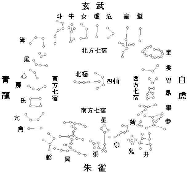 北方玄武七宿:斗(dǒu)、牛、女、虚、危、室、壁