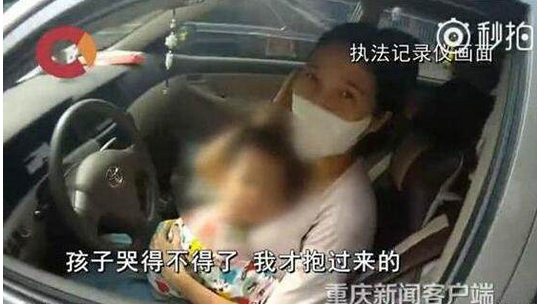 江北公安分局交巡警支队观音桥大队民警尹平、胡凯正在例行盘查过往车辆,远远地就看到一辆银灰色车辆驾驶室有个小孩,于是民警立即打手势让该车靠边停车。“打开车门一看,当时我也惊呆了,正在驾车的女子一手开车,一手抱着孩子,怀里一岁左右的小宝宝正在吃奶,而且还没系安全带”,民警说道。于是民警立即让驾驶员停车熄火,并且将孩子抱给坐在后排的亲属。驾驶员陈女士说道,开车经过红旗河沟转盘时,由于车流量较大,车行缓慢,孩子不停地哭闹,后排的亲戚无法安抚孩子情绪,因担心孩子饿了,便想到了喂奶安抚孩子情绪。结果刚从亲戚怀里抱过来小会儿就被警察发现了。