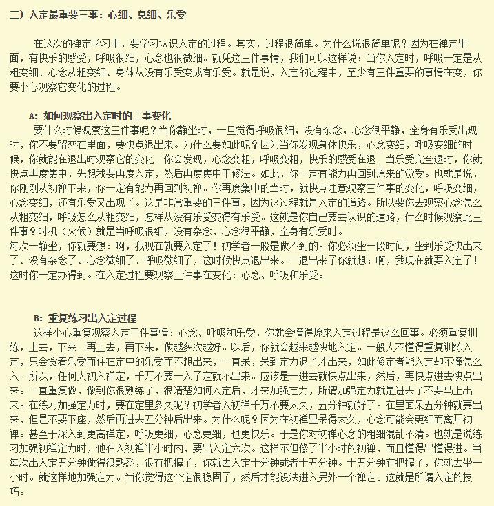 ![]() 打坐入定就是灵魂出窍吗? 很多人进入入定的状态就是打坐,长时间的打坐,慢慢的等待,然后就会进入到一种入定的状态。根据入定的状态来看,人还是有肉体的感觉的,只不过肉体的感觉痛苦消失,剩下的只是舒适了,所以还不算彻底的灵魂出窍。 有大师说过,灵魂出窍是高等级的入定,能进入入定的人灵魂出窍要更容易一些,但是入定还不算是灵魂出窍,灵魂出窍之后,人看到的世界是跟肉身所看到的世界完全不同的! 比如鬼怪看到的河流的样子是非常可怕的火焰的状态,灵魂出窍后,看到的世界也是非常不同的! 那么普通修炼的人如何可以入定呢?给大家来一个图解 ![]() 另外,入定需要满足几个条件:分别是第一“远离五盖”,所谓的五盖是:昏沉、掉悔、嗔、疑,还有贪欲。;了解入定的一些基本感受;明白入定不是简单的等待。 ![]() 想要入定,三件事一定要清楚,心一定要细,气息要细,快乐的享受。 ![]() 很多人会想知道入定后会看到什么,由此来判断自己是否已经入定,不同修炼阶层的人入定后看到的景象是不一样的,但是大部分人入定后是进入一片虚入、快乐的状态,心态快乐,身体舒服;还有入定过的朋友说,入定后,想见到什么就可以看到什么,皆是你想的事,知乎上有朋友描述入定后的景象是下面这样的,不同的阶段完全不同! ![]() |