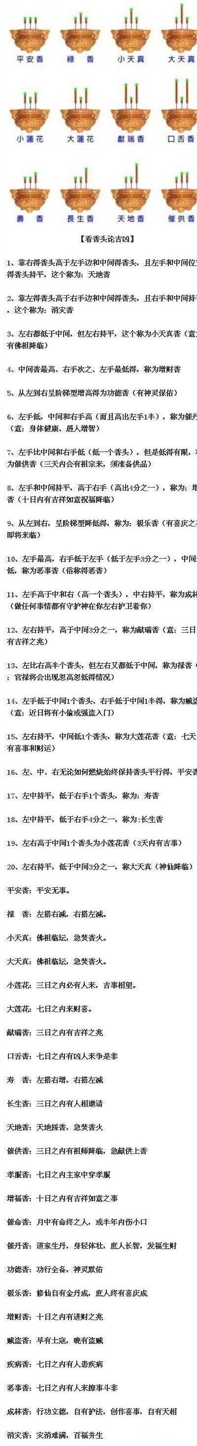 关于烧香有很多禁忌,先给大家看看 过了中午12点能拜佛吗 烧香要趁早,这样更显得心诚,而心诚则灵。 通常情况下,拜佛一般是在上午七点到九点之间,而且民间很多地方对于焚香礼佛的时间是非常讲究的,一般是在中午十一点之前就结束了。但是这也并不是约定俗成的事情,焚香拜佛旨在心诚,拜佛的时间可以根据特殊情况特殊对待,只要我们怀着一颗虔诚敬佛的心,佛祖是不会怪罪的。 为什么下午不烧香 烧香在我国民间也有很多的讲究,有的地方的民间习俗是下午不烧香,主要是根据烧香想要求什么,通常情况下,烧保家香没有特别的时间要求,如果是烧高香、许愿想,最好是在上午七点到十一点之间最为适宜。而且对于烧香时香的数量,一般是三、六、九或者是十根,这也是根据烧香时求的是什么来决定香的数量,当然了不同地区会有不同的讲究。 下午以及晚上烧香也是在特殊的节日里,比如在民间很多地方,中秋节会在傍晚点灯之后,才焚香礼佛,还有就是每年的春节,在民间有“大年三十熬一宿”的习俗,所以在春节人们通常会选择在大年三十晚上十二点之后点炮竹、焚香祈福,伴随着新年钟声的响起,一家人喜气洋洋迎接新的一年! ![]() |
