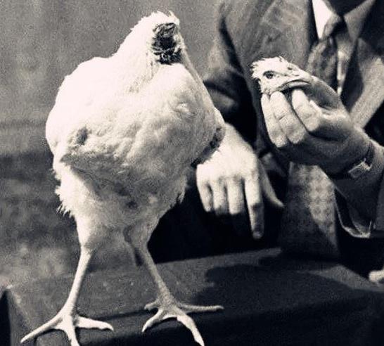 动物和人类一样,头是有大脑的地方,而大脑是驱动整个人体的中枢器官,如果没了头就是个死,就算不死也只是神经性的动作了,比如蛇砍掉头后身体还可以扭来扭去这是纯粹的神经反射动作。但是在美国有一只鸡被“砍掉了头”之后还存货了18个月,还因为给主人赚了超级多的钱,不过这事发生在二战期间的1945年,下面是无头鸡