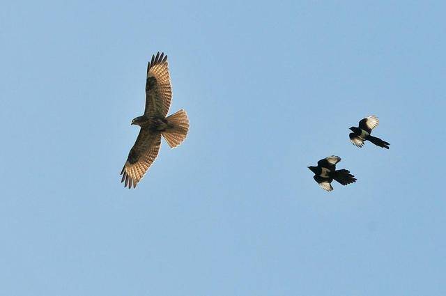 那么在古代民间传说老鹰成群是什么预兆呢? 古代因为科学知识少,所以传说老鹰成群并不是什么好的预兆,关于老鹰,老人们有很多恐慌,老鹰暗黑的身体,尖利的眼睛,看上去就十分骇人,有经验的老人会传言,老鹰在一个地方盘旋,这是在找食物,说明这个地方有很多很丰富的食物。而成群的老鹰出动,那不是有大规模的捕捉食物的踪迹,就是有重大的天灾来临。 很多地方深信这样的预兆,老鹰成群而来,不是吉兆就是凶兆,不是家中有升迁,大能之人的诞生出世,就是时事有灾难祸患,动摇凄苦的到来。但其实经过了迷信的重重迷雾,科学已经解释了这些老鹰的举动,它们成群盘旋,就是为了食物,还有迁徙而来。老鹰是个大种类,我们常见的是独居的老鹰,但事实上老鹰也有成群结队的迁徙,仅此而已。 老鹰为什么不敢惹喜鹊? 老鹰不敢惹喜鹊,事实上不仅仅是老鹰不但惹喜鹊,很多大型鸟类也都是不敢惹喜鹊的。尤其老鹰常常一只鹰活动,而喜鹊可是一群群的,而且喜鹊虽然名字喜庆,外表可爱,但人家武力值可不低,它们脾气暴躁,睚眦必报,还十分团结,在鸟界素有“鸟界流氓”的名号。身无二两肉,体型灵巧难以捕捉,记仇还团结护短,老鹰见了它顶多吃一次亏,再见就远远的走开了,不敢惹是真的不敢惹。 |