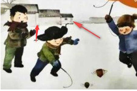 事情是发生在一篇叫做《陀螺》的课文中,文章本身没什么问题,只是它的配图被一些人发现很诡异,在小朋友身后的房子一侧,能隐约看到一个诡异的人影站在那边,好似在偷偷的张望小朋友们玩陀螺一般。