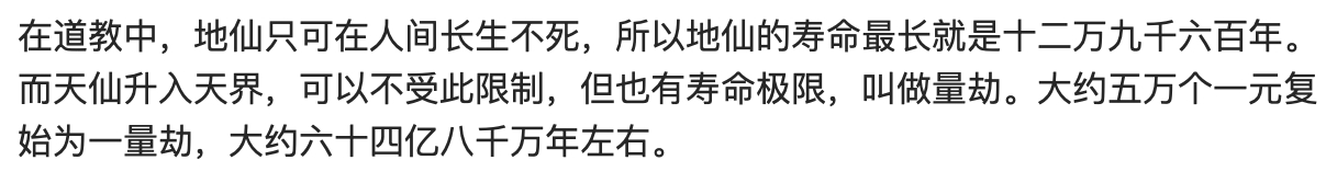 在道教的神仙体系中,一般把神仙分为两类,第一类就是先天成神,这类人从出生就修为不凡,不用修行就能有大神通,比如说三清、女娲等,还有一类是凡人修成仙人,他们需要自己进行修炼,一般分为鬼仙、人仙、地仙和天仙等,其中地仙应该是和人间联系最紧密的,在民间也有很多关于地仙的传说。那么地仙的寿命是多少年? 我们比较熟悉的地仙,就是镇元子大仙、菩提祖师以及土地公,还有就是民间传说的八大地仙,其实一开始是五大仙,分别是黄鼠狼、狐狸、刺猬、蛇和老鼠,后来又加入了狼、獾和猞狸,组成了动物界的八大=仙,在道教体系中,地仙在神仙等级中算是中间的,不是等级最高的也不是最低的,算是中等神仙。 很多地仙都算是散仙,他们基本上都是自己修炼成仙的,但因为不愿意进入组织(天庭),所以在人间活动,在道教的典籍中,说过地仙如果在人间的话,是可以长生不死的,最长寿命的地仙,大概能活到十二万九千六百年,而像镇元子这样的,有人参果相伴的,估计能得到永生。 ![]() |