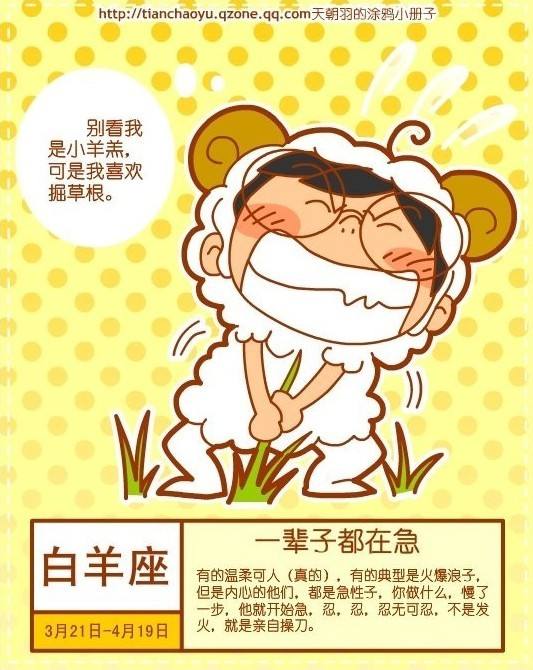 致命一句:会冒犯到他们尊严和损及自信的事,最好还是小心。如果你不信这一点,执意去冒险,小心白羊座翻脸不认人,所以千万不要说:“你是哪根葱"这类的话。他铁定会跟你拼的!