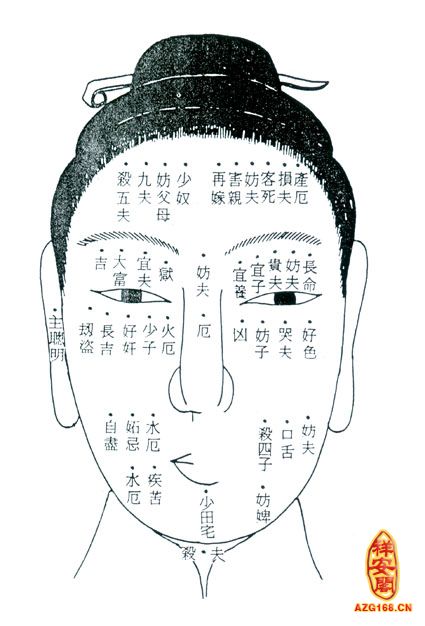 奸门就在太阳穴的位置,也就是我们眼尾后部的区域内,奸门主管女人的婚姻与性,奸门平满的女人性生活平和,奸门鼓起来的女人偏于冷淡,而奸门凹陷的女人性生活就频繁,丈夫往往很难满足,年深日久也就克夫了.