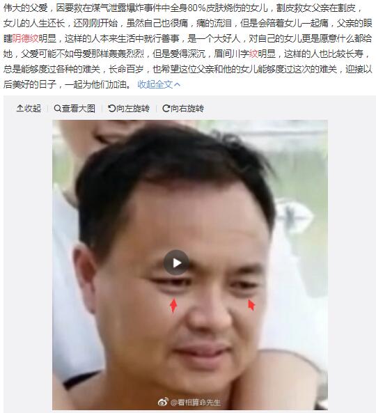 当代活雷锋郭明义的阴德纹 阴德纹长在哪里是什么样的? 阴德纹又叫阴骘纹,一般位于眼下卧蚕内的部位,形状如细丝,但是有光泽。古时候人们认为,阴德纹主管子嗣,有阴德纹的人,子嗣会比较多,而这一说法也是有依据的。中医认为,有眼袋或者黑眼圈的人,属于精气神不足,肾亏的表现,而这种人则不容易生孩子,这时候就需要清心寡欲,广积阴德,这里所说的阴德,也可以理解为阴德纹,而有阴德纹的人,表明精气神十足,故而生子也较为容易。 ![]() ![]() 古天乐的眼下也有明显的阴德纹 眼纹与阴德纹的区别是什么? 说到这儿,有些人可能有些困惑,上了年龄的人,脸上的纹路这么多,光眼睛周围就有不少纹路,那如何区别眼纹与阴德纹呢?这就需要从这两种纹的位置和形状上来说了。阴德纹一般位于两眼的下方,成细丝状,分布均匀而不多,但是眼纹呢又称为鱼尾纹,一般位于眼角的位置,其形状像鱼的尾巴而得名。位置上的不同,是区分眼纹与阴德纹最好的方法之一。 阴德纹与桃花纹有明显区别 |