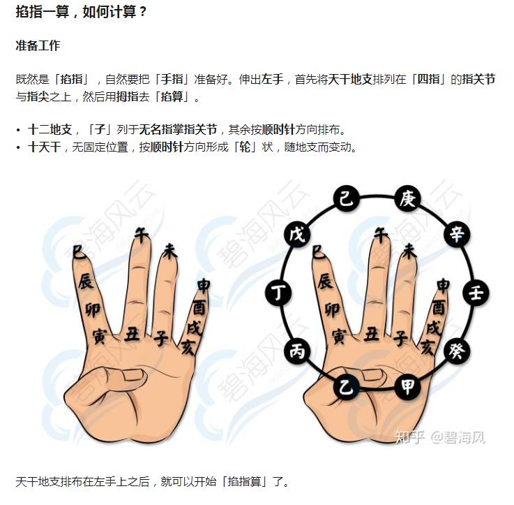 相信我们许多朋友在看一些古装电视剧的时候都会在距离看见一些自称神机妙算的算命先生,甚至看起来还很专业、有模有样的,但其实不止是在电视里,在现实生活中我们行走在一些大街小巷甚至有一些店面,都是存在有算命先生这么一个职业群体存在的,我们有时候路过或者看见算命先生给人算命时都会说一句“掐指一算”,许多人就好奇这掐指一算是怎么掐指算命的?随后网上就有一些网友还真把掐指算命的口诀和方法给整出来了,让我们一起来看看!