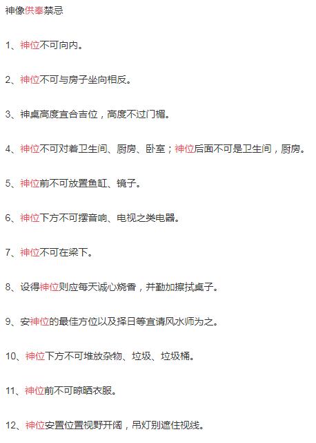 下面是有关神位摆放禁忌: