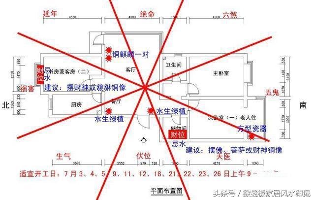 西四宅的吉位示意图 想看出住宅的吉凶位置,首先要看房子的坐向,坐向和买房子讲的房屋朝向是两回事,朝向指的是窗户的方向。而坐向,则和入户门的方向有关。 其中,因为不同的方向,分为东四宅和西四宅。东四宅根据后天八卦,分为,震宅 、巽宅、 离宅、坎宅。西四宅则分别为坤宅、兑宅、乾宅、艮宅。 西四宅根据大门的不同方位,有四个吉位和四个凶位。当然,通过与大门位置的对角,还能分析出财位,财位放置聚宝盆、吸财树,则会财运大增。 西四宅大门朝向哪最佳? 西四宅四个吉位大门的位置,分别为西北、西南、东北、正西。也就是说,这四个位置的房间大门的朝向是最佳的。 宅卦在吉位,也要看主人的命卦,命卦与宅卦不合,命卦是不能改的,因此可以通过改门的位置,来避免。 现代的住宅楼房,门的位置是不能随意改变的,要想避其凶性,只能加屏风。屏风现代装修用得少,古时候可是灵活的用来调整房屋格局的好物件。 也许很多人认为后天八卦讲究的宅卦已经过时,与现代发达的时代不符,其实,越是有能力的人,越讲究这些风水。这是八卦一种先天的力量,不是迷信,是宇宙的自然规律。我们要做的就是顺应自然,而非逆行。 |