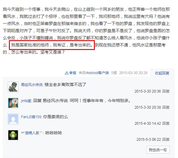 大家都知道,很多非常专业的技能需要“持证上岗”,比如律师证、驾驶证、执业医师证、会计证等等,没有证你擅自从事相关的职业是违法的,也是危险的!不名正言顺的,不被国家认可的。那么作为风水这样一项传承了几年前的文化,有较高的专业知识要求的行业是否需要一种“风水执业证”呢??百度贴吧里就有位朋友遇到这样一件事,说看到一个“风水师”声称自己的有国家考出来的“风水执业证”。