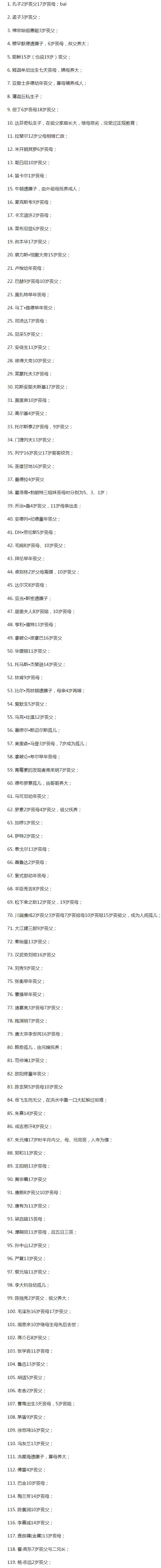 民间有一种说法,就是儿女都是前世欠的债,所以一个婴儿要长大成人,离不开父母的辛勤养育,而遗腹子指的是父亲去世后才出生的孩子,这样的孩子,从没出生的时候就失去了父亲,和古代相比,现代人对于遗腹子的看法可能要更现实一些,毕竟很多人都对遗腹子是比较抵触的。 虽然说有轮回转世的说法,但是要说遗腹子是父亲投胎的,就不太现实了。毕竟传说中想要投胎肯定是需要时间的,而遗腹子肯定是在父亲还没有死前,就已经存在了,只不过是在肚子里没有出来而已,所以民间说法中,并没有说遗腹子是父亲投胎的,只能说和父亲的缘分比较浅,所以无缘相见。不过在民间传说中,也有一些父亲投胎到母亲肚子里的事例,不过这种情况是非常少的,一般情况下是不可能实现的。 在古代,遗腹子一般会被认为是命硬的,觉得他八字比较硬,容易克到家人,不过现代人对于遗腹子的看法没有那么绝对,只是觉得非常可怜而已,其实遗腹子的命算不上特别好,毕竟一出生就失去了父亲,但也许上天会从另一个方面来补偿他,你是上有大量的名人很小就失去了自己的父亲,据不完全统计,如下表所示: ![]() |