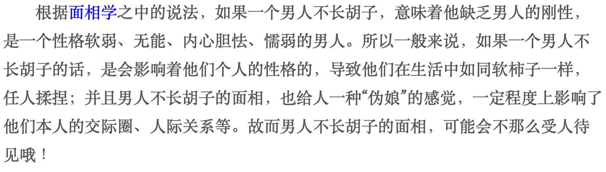 传说不长胡子的男人命运如何,男人不长胡子没出息吗?