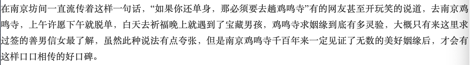 近些年,有些旅游胜地成了网红打卡景点,让很多年轻人都趋之若鹜,比如说南京的鸡鸣寺,相信小学时都学过那句古诗:“南朝一百八十寺,多少楼台烟雨中”,因此让人对江南古寺充满了憧憬,而鸡鸣寺就是一座历经千年的古寺,而且有传闻说,鸡鸣寺求姻缘非常灵验,那么这个说法是真的吗?