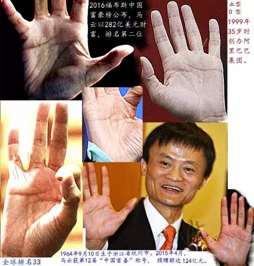 一个男人将来是否有钱透过手相也会罗知一二,通过人的双手的形状、纹理、软硬、色泽都可以推断出这个人的运气祸福。放眼我们身边不乏有人刻苦辛劳,但只能在温饱线上挣扎,顶多也只混个小康,而有的人运气仿佛特别好,脑子不是最聪明的,也不是最努力的,家庭出身也很一般,却莫名其妙的富了起来,那么,哪些世界顶尖的亿万富豪们的手相都是什么样的呢?