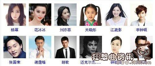 代表明星:陈赫、蔡卓妍、柳岩、宋慧乔、黄晓明、安妮·海瑟薇、全智贤、林青霞、朱茵、莱昂纳多、胡杏儿、林熙蕾等等