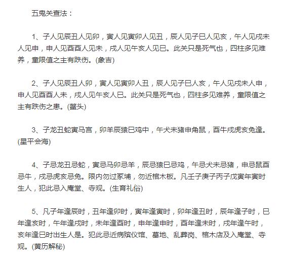 这里五鬼和丧命、孤鸾、羊刃、空亡等等都属于凶煞,但五鬼煞不会伴随一辈子。只会在遇到特定的年份、时辰才会遇到,具体的五鬼煞查询方法见下图: