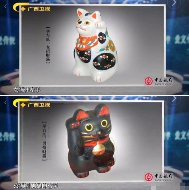 抬右手招的是公猫,有着招财的含义。