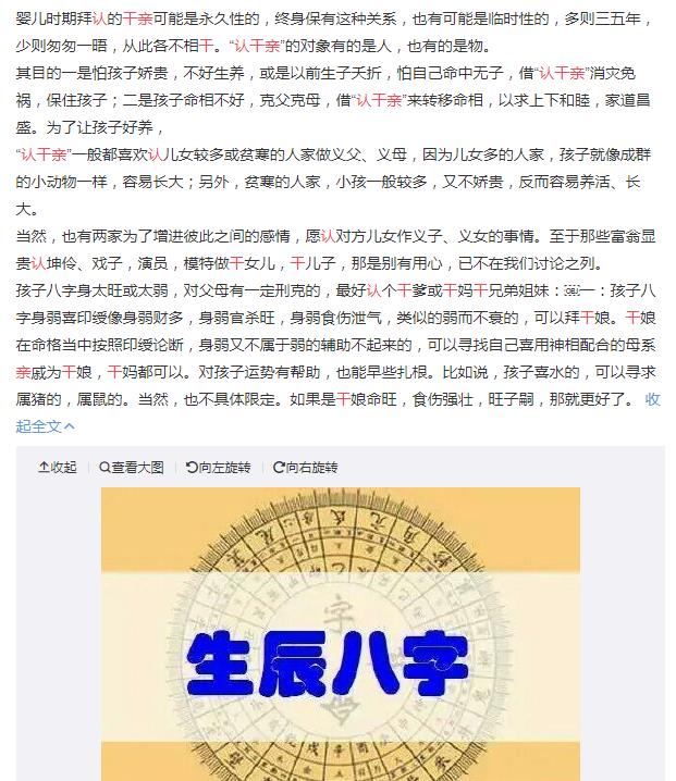 在民间,很多地方都有“认干亲”的习俗,目前来看,认干亲的主要目的有2个,第一、本身两家的关系非常要好,所以想让孩子一辈认干亲,让两家亲密的关系再近一层,更长久;第二、有些孩子出生后父母喜欢给孩子算命,看看命里缺什么,怎么补,所以通过认干亲的方式来弥补孩子命理上的缺憾,挡灾挡难。当然,还有些不法分子为了经济利益认干亲,如下媒体报道: