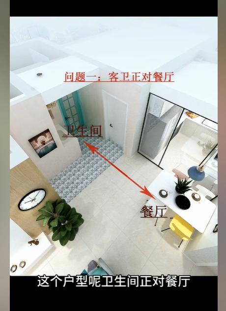 餐厅对着卫生间有什么不好?餐厅对着卫生间的处理方法化解图