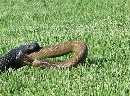 10、棕伊澳蛇:分布于澳洲,体长约2米。栖息于树林、沙漠,以蛙、蟾蜍、小哺乳动物为食,胎生。 |