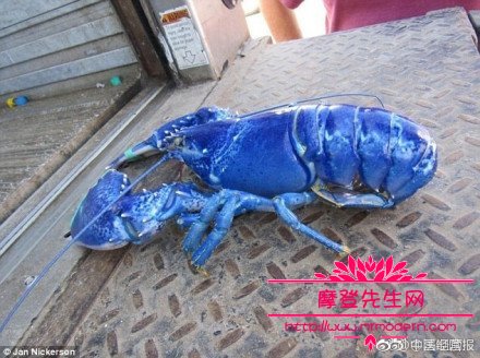 “英国一位渔民在德文郡海岸捕获一只罕见的蓝色螯龙虾”。在当地,蓝色龙虾被视为好运的象征,渔民将其命名为“拉里”(Larry)后放归大海。据说,出现蓝色螯龙虾的概率只有两百万分之一。