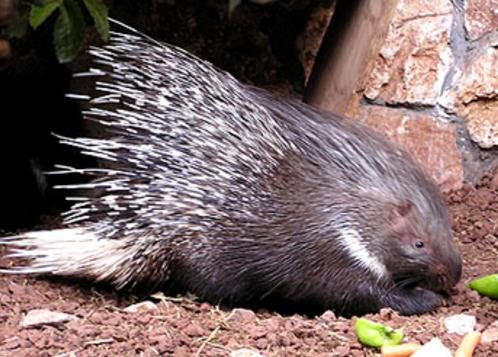 1.栖息环境 豪猪通常栖息于山坡、草地或密林中。洞居。夜间活动,并常有一定路线。走起路来棘刺相互摩擦有声。植食性。每年繁殖1次,1胎4仔。有3属11种,中国有2属2种。棘刺可做饰物、牙签和钓鱼用的浮子等,肉鲜嫩味美,可供食用。 2.分布 非洲、欧洲的地中海沿岸,亚洲西南部、南部和东南部的热带和亚热带森林、草原中。 |