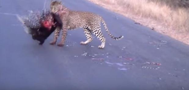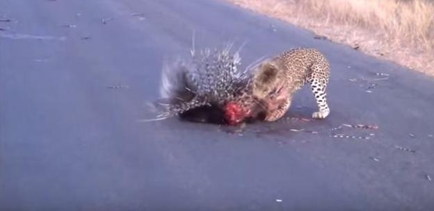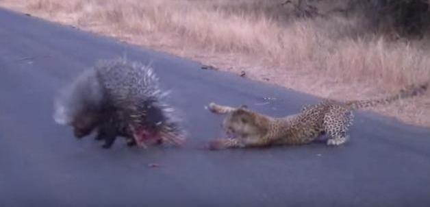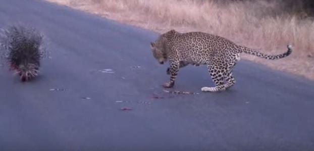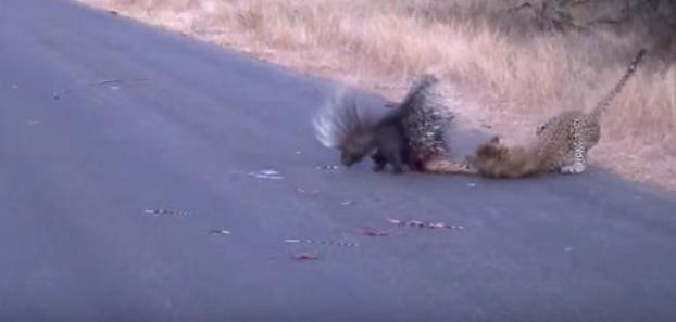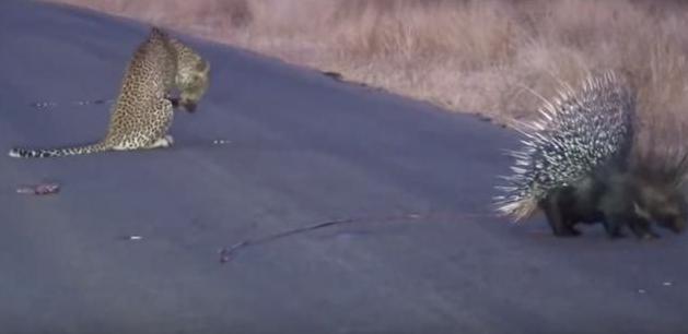 花豹遇豪猪场面太惨烈图,豪猪是属于什么科类的动物?