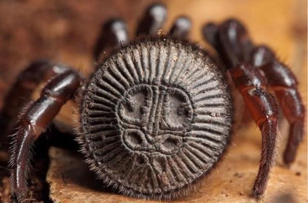 样子奇特的里氏盘腹蛛全身都有绒毛,有着深色圆盘状的大屁股,上头的纹路细致且对称,尽管有着凶恶的外表和具毒性,但它们是很温驯的稀有动物,国外会有人出高价买下它来当宠物,由于饲养环境要求高,因此要养它并不容易。