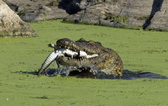 鳄鱼为什么吃自己的孩子? 今年八月份在南非某国家公园内就上演了一幕令人震惊的大鳄食小鳄现象,该画面被当地一名摄影师拍下,从照片中可以看到,河里一只体型巨大的鳄鱼只露出头,其血盆大口中正躺着一鳄鱼宝宝,这条小鳄鱼身上可依稀看见不少咬痕,已经一动不动,奄奄一息,非常可怜。 最终这条大鳄直接生吞了这条鳄鱼宝宝,全程不到一分钟,看着令人十分倒胃口,太恐怖。 对此专家表示导致鳄鱼吃鳄鱼原因系鳄鱼数量愈来愈多,而体型巨大的鳄鱼则起主导作用,控制着咸水鳄的种群数量,加上鳄鱼本就是肉食动物,只要是肉才不会考虑,直接先撕咬啃一口。 还有一种说法是我们的眼睛欺骗了自己:我们经常可能怀疑鳄鱼吃自己的孩子,是因为鳄鱼在保护在自己的孩子时把孩子都是含在口里逃开,所谓误以为鳄鱼吃自己的孩子。不过鳄鱼吃自己的同类这是真实的。 鳄鱼为什么怕猫这种小动物? 鳄鱼留给人们的印象一般都是凶残,可是它却害怕猫?这是为什么呢?我们来找下答案。 首先我们来看下猫和鳄鱼对峙的动态图片 其实并不是怕猫,而是一种避让。猫的反应速度是鳄鱼的十几倍,比较灵活在岸上难以攻击到,而且鳄鱼本身也没有把猫当成捕食的对象,从两者能力的差异上讲,鳄鱼并不是害怕猫,而是烦恼猫的骚扰而做出规避。 |
