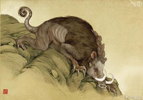 柜山上的畏兽,样子像猪,四肢却长出了爪子,带有锯齿。见到它的地方,地面多起伏,所以猜测狸力善于挖土。